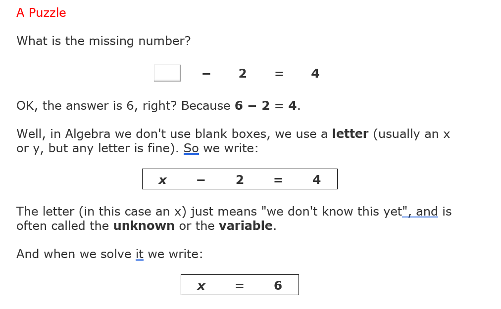 This is algebra! Algebra is a process of using a formula to solve a problem.