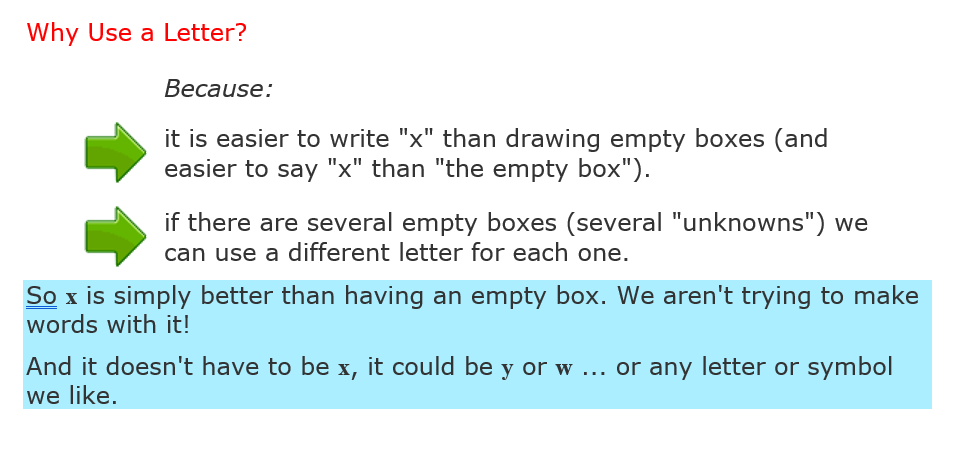 To make it easier, we use letters, so it looks like this: